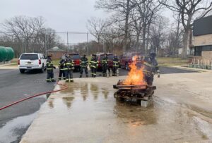 Members of the North Massapequa Fire Department’s Training Committee recently conducted a drill for its probationary members (aka- ‘Probies’) to learn about the classifications and chemistry of fire. They also had an opportunity to learn about the various types of extinguishers and their applications with live fire. “Training is an ongoing process in the Fire service,” explained Chief of Department Joseph G. Ferrante. “We are fortunate to have many experienced senior members who share their extensive knowledge through their efforts with our Training Committee.”